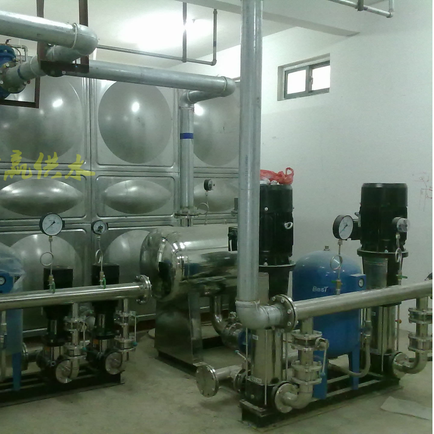 “自來水二次增壓供水設(shè)備”是長沙中贏供水設(shè)備有限公司采用前進(jìn)的設(shè)計技術(shù)自行開發(fā)研制的新型供水設(shè)備。具有變量恒壓,供水壓力精度高的顯著特點,即在壓力不變的前提下,流量從零到較大工作流量范圍內(nèi),供水壓力變化范圍在±0.01Mpa以內(nèi),可消除對自來水管網(wǎng)產(chǎn)生負(fù)壓的現(xiàn)象,提高了生活給水系統(tǒng)的可靠性;占地面積小,節(jié)省建設(shè)投資,安裝使用維護(hù)方便;是適合用于工業(yè)及民用建筑生活系統(tǒng)的理想給水設(shè)備。
